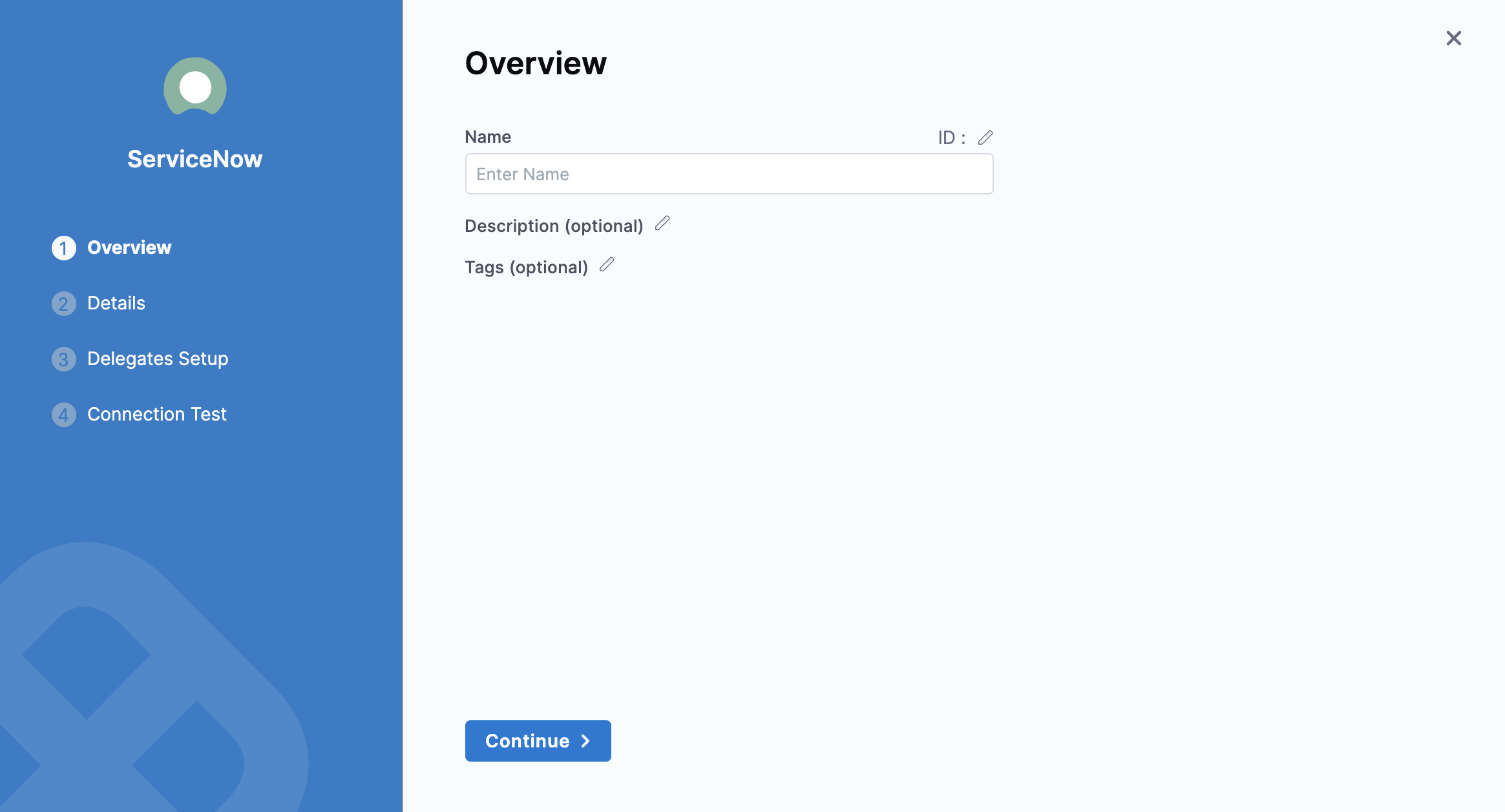 You can choose to update the Id or let it be the same as your ServiceNow connector's name. For more information, go to Entity Identifier Reference.