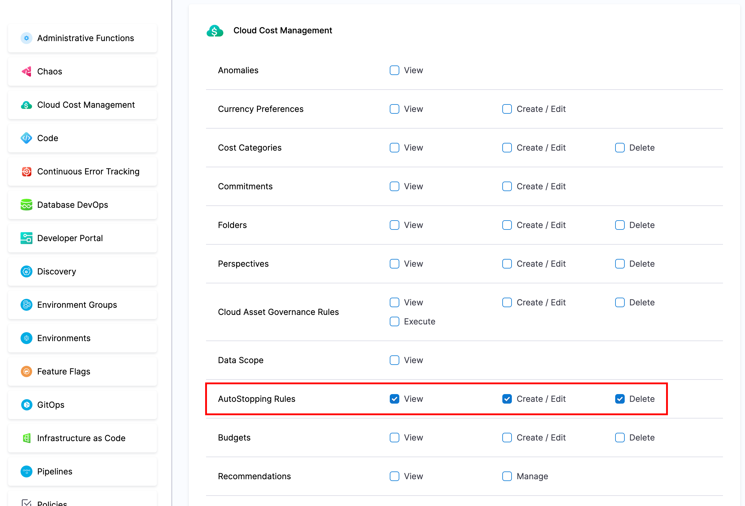 You can control view, create+edit, and delete access for AWS, Azure, and GCP autostopping based on cloud connectors (cloud accounts).